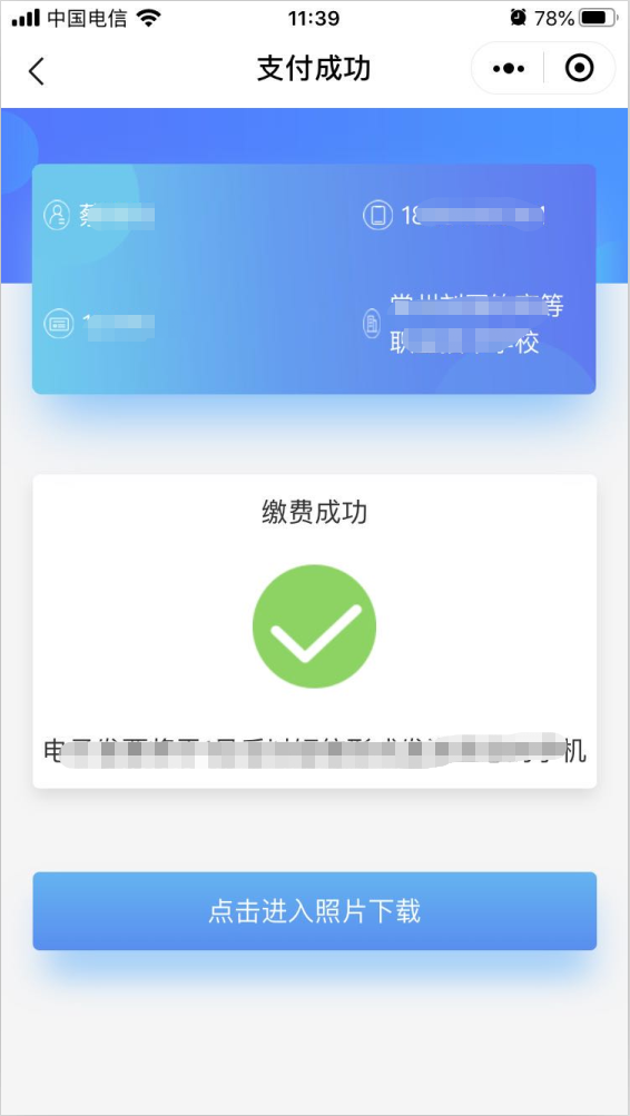 8)选择“确认上传”后,将根据学校在系统中设置的“是否学校统一缴费”,进入最后页或支付页。
