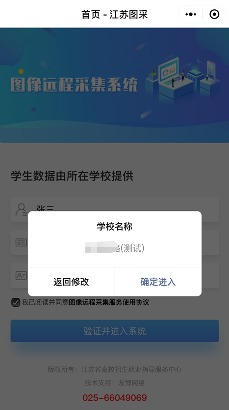 本次图像采集为线上采集,请同学们登录微信,搜索小程序“江苏图采”,或关注“江苏省招就中心” 公众号,点击“服务指南”中的“图像采集”项目,实名验证通过后,严格按系统要求进行在线采集和校对确认。