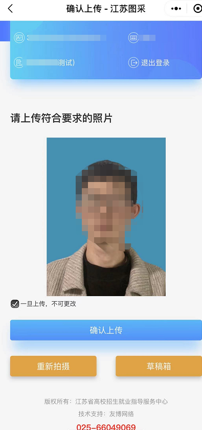 6.严禁翻拍:证件照应注重真实性,严禁翻拍其他照片,严禁利用其它软件做任何脸部美颜处理,如有违规,学生账号将被锁定,需由学校管理员进行解锁。