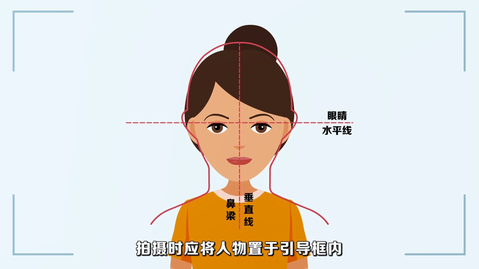 4.佩饰及遮挡物:不得佩戴耳环、项链等饰品,头发不得遮挡眉毛、眼睛和耳朵,不得使用头部覆盖物(宗教、医疗和文化需要时,不得遮挡脸部或造成阴影),不宜化妆或涂抹防晒霜。