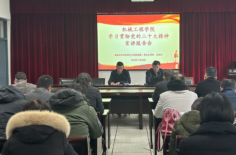 为深入学习贯彻党的二十大精神,引导全体教职工学思践悟新思想、砥砺奋进新征程,11月30日下午,pp电子官方网站党委召开党的二十大精神宣讲报告会。马克思主义学院教授、硕士生导师,南通市委理论宣讲团成员王明华应邀作宣讲报告。