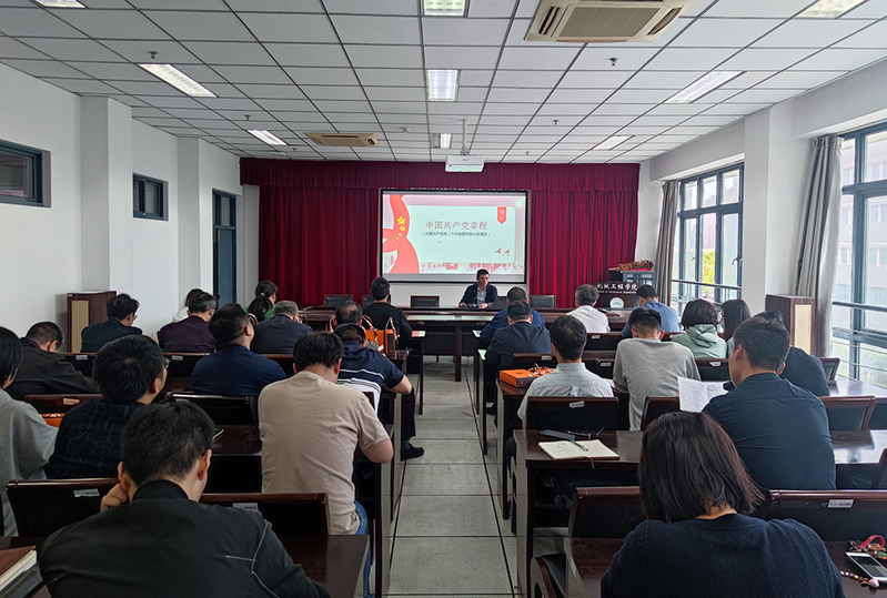 5月10日下午,pp电子官方网站召开教职工党员大会,举行学习贯彻习近平新时代中国特色社会主义思想主题教育专题党课。学院党委书记张志刚以《学党章党规 做合格党员》为题讲授专题党课。