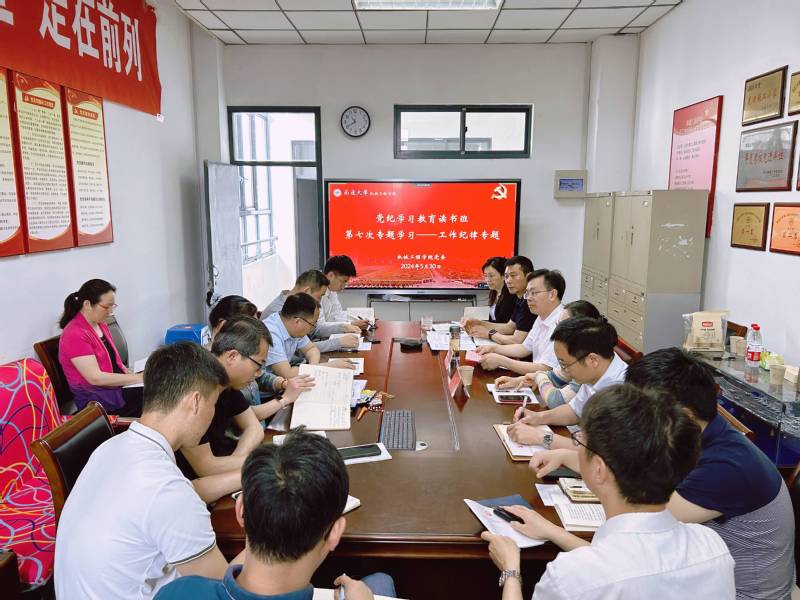 自5月8日以来,pp电子官方网站党委举办党纪学习教育专题读书班,连续组织了八次专题学习。5月30日,校党委常委、副校长施佺巡学旁听学院党纪学习教育第七次、第八次专题读书班学习暨结班式会议并讲话。