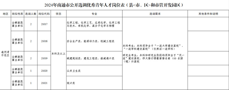 根据2024年南通市公开选调优秀青年人才工作安排,通州湾示范区2024年度共选调8名优秀青年人才,具体如下图: