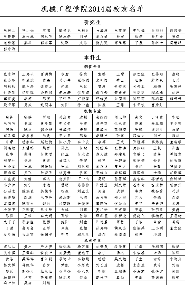 pp电子官方网站2014届校友名单