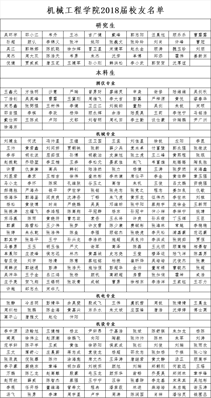 pp电子官方网站2018届校友名单