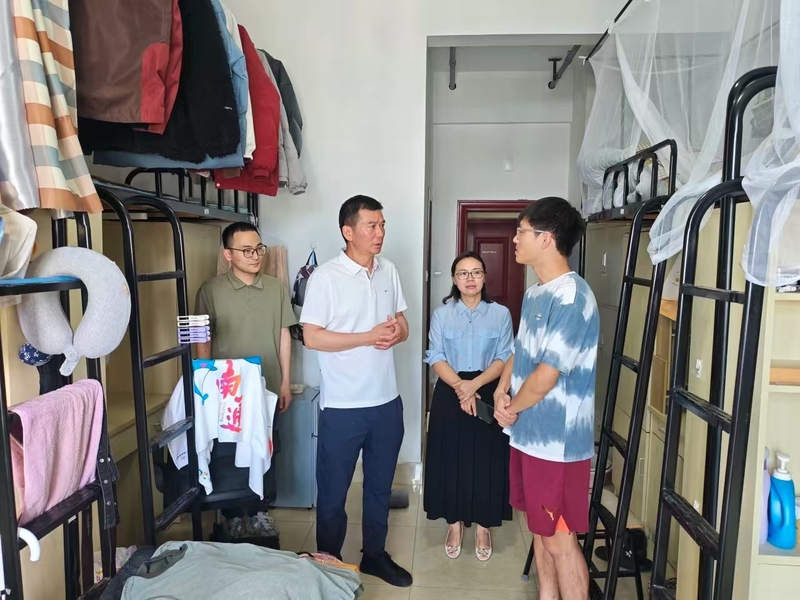 在宿舍内,张志刚、殷春华与同学们亲切交流,深入了解暑期留校学生的学习、生活等情况,鼓励大家科学制定学习计划并切实执行,希望同学们假期留有所值、学有所成。同时,他们就是否存在私拉乱接、违规使用电器、吸烟等安全隐患进行仔细排查,并就保障宿舍安全、维护宿舍整洁等一一提出整改建议与要求,叮嘱大家务必绷紧安全之弦、共守平安校园。