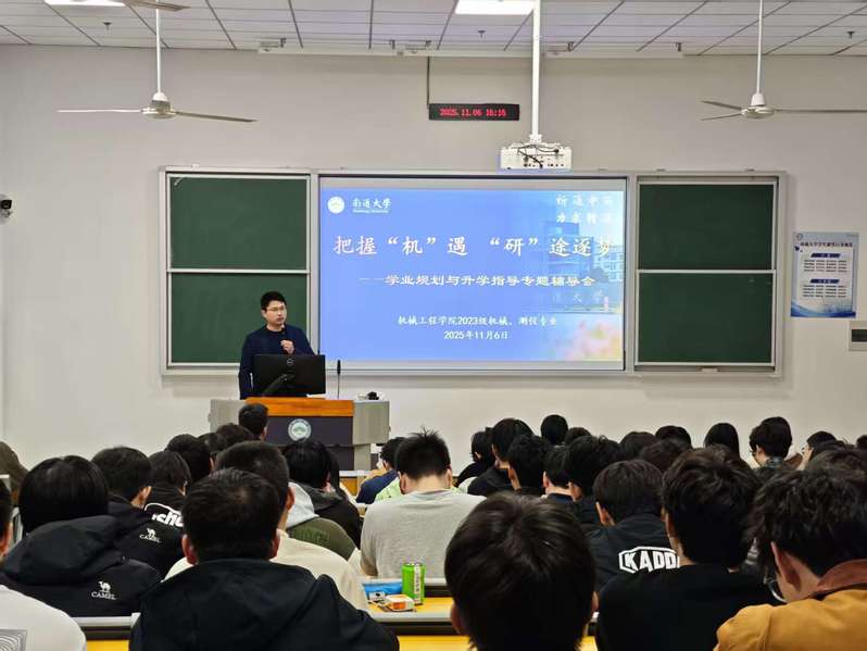 为持续助力2023级学子明确学业方向、破解学习难题,11月6日下午,pp电子官方网站面向机械工程、测控技术与仪器专业学生,成功举办第二期“把握‘机’遇‘研’途逐梦”学业规划与升学指导专题辅导会。智能制造系主任邢强老师,2023级辅导员张振兴、陈业秋出席辅导会,与同学们面对面交流成长困惑、分享实用干货。